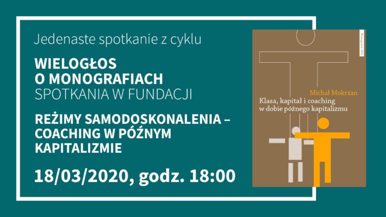 Uprzejmie informujemy, że spotkanie z cyklu WIELOGŁOS O MONOGRAFIACH FNP pod hasłem Reżimy samodoskonalenia - coaching w późnym kapitalizmie, zaplanowane na 18 marca 2020 r. nie odbędzie się. Drugi termin jest w trakcie ustaleń.Pretekstem do spotkania będzie książka wydana w serii MONOGRAFIE FNP...