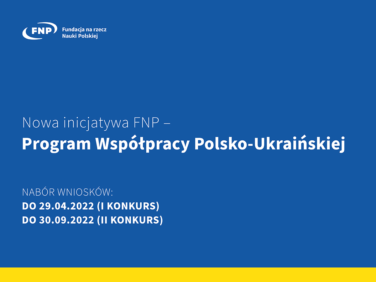 W związku z tragicznymi wydarzeniami w Ukrainie Fundacja na rzecz Nauki Polskiej w akcie solidarności z naszym sąsiadem, postanowiła uruchomić nową inicjatywę ? Program Współpracy Polsko-Ukraińskiej. FNP sfinansuje do 6 projektów naukowych w zakresie nauk społecznych i humanistycznych, realizowanych wspólnie przez parę naukowców lub naukowczyń z Polski i z Ukrainy. Budżet każdego projektu na okres 12 miesięcy wynosi 268 800 zł ? obejmuje on zarówno środki na pokrycie wynagrodzenia, jak i kosztów związanych z prowadzeniem badań.