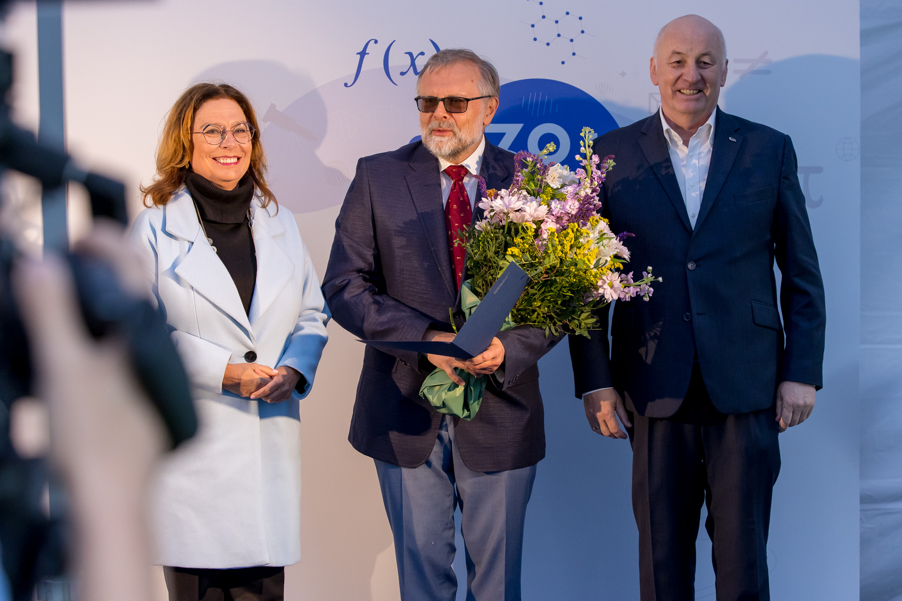 Prof. Szymon Malinowski (w środku), laureat Wyróżnienia im. prof. Macieja W. Grabskiego. Wręczający (od lewej): Marszałek Małgorzata Kidawa-Błońska, prof. Maciej Żylicz (fot. Paweł Kula / Archiwum FNP
